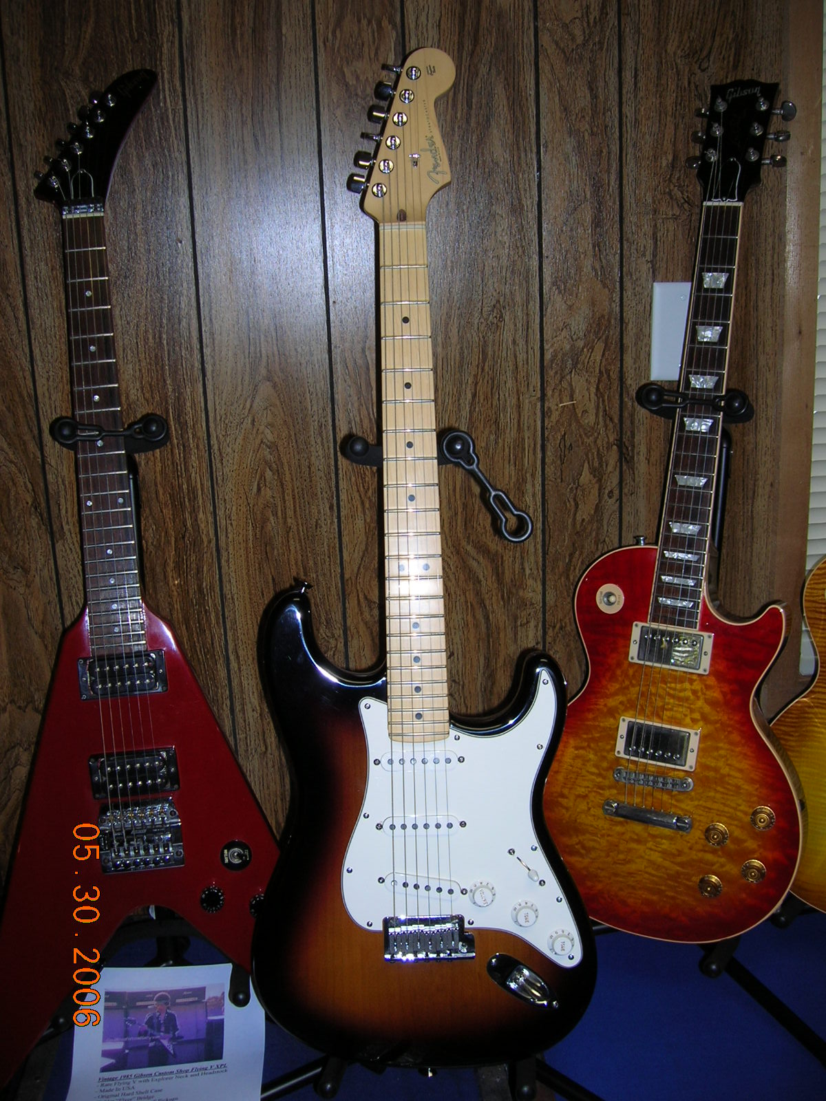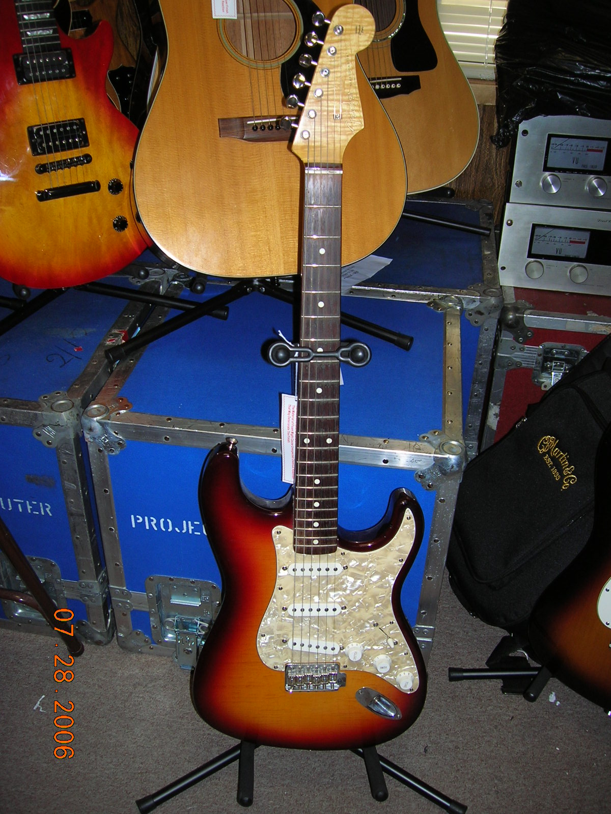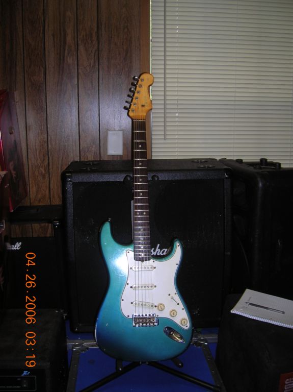 1965 Fender Stratocaster - Lake Placid Blue $28,000 All Original, with Original Case. 1966 Fender Mustang - Dakota Red $1800 - All Original With Original Case 1990 Fender Telecaster - Custom Shop Masterbuilt By Michael Stevens For Robben Ford One Of a Kind, Serial # 67 2003 Fender Stratocaster - USA 50th Anniversary $1199 2000 Fender Stratocaster $999 Made In Japan "FOTO-Flame" series w/case |